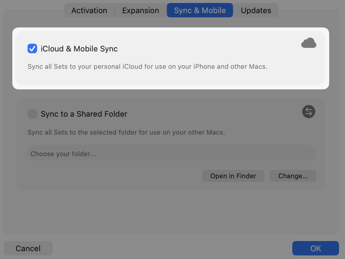 Once the requirements above are fulfilled, you can enable synchronization in Typinator.